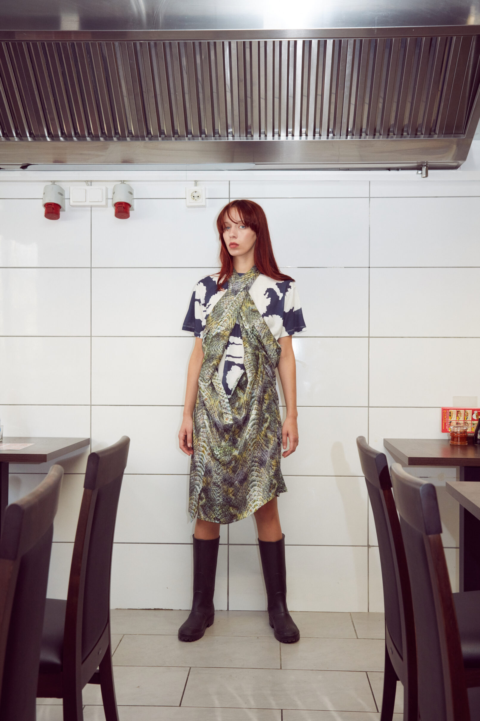 Set in the fictional White Dragon Noodle Bar of Blade Runner, this performance collection is all about steam, wetness, aroma, flavour, elasticity, rubber boots and fortune cookies.